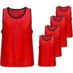 ビブス 大人 無地 サッカー ユニフォーム スポーツ用 練習着 蛍光カラー (レッド, 5枚セット)