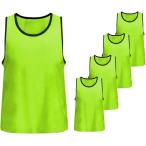 ビブス 大人 無地 サッカー ユニフォーム スポーツ用 練習着 蛍光カラー (ネオングリーン, 5枚セット)