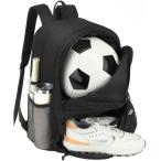 ボール用デイパック サッカー キッズ ジュニア ボールバッグ リュック ボール収納 多機能ポケット 靴収納 (ブラック, 小学生)