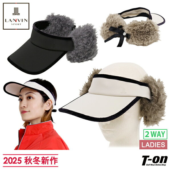 【ブラックフライデーP10倍】ランバン スポール LANVIN SPORT 日本正規品 レディース サンバイザー イヤーウォーマー付き シープファー調 耳当て取り外し可 リボン付き 2WAY ベロアパイピングデザイン ロゴワンポイントプリント 【送料無料】 2025 秋冬 新作 ゴルフ