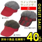 訳あり4割引き ゴルフ ヘアーバイザー 髪の毛付き 赤 フレアーバイザー サンバイザー ウイッグ 帽子 コンペ 爆買