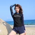 長袖 ラッシュガード セパレート水着 英文字 白T トップス 速乾 レディース水着 水陸両用 プルオーバー ウォーターパーク サーフィン
