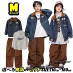 デニム 男女MIX キッズダンス衣装 セットアップ ヒップホップ 女の子 男の子 デニムジャケット 茶色 カーゴパンツ ブラウン ストライプ シャツ 長袖 ゆったり 普
