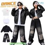 レザー ジャケット 黒 キッズダンス衣装 セットアップ ヒップホップ デニムパンツ ダメージ 長パンツ ダンスキッズ ヒップホップ 子供服 カッコイイ 男の子 女の