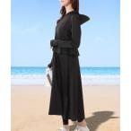 ラッシュガード 「2点セット」フリル付き フーデット ロング ジップアップ ラッシュジャケット レディース