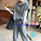 ジャージ セットアップ レディース 上下セット スウェット アメカジ 袖なし フード付き トレーナー スポーツウェア 韓国風 おしゃれ 部屋着 運動着