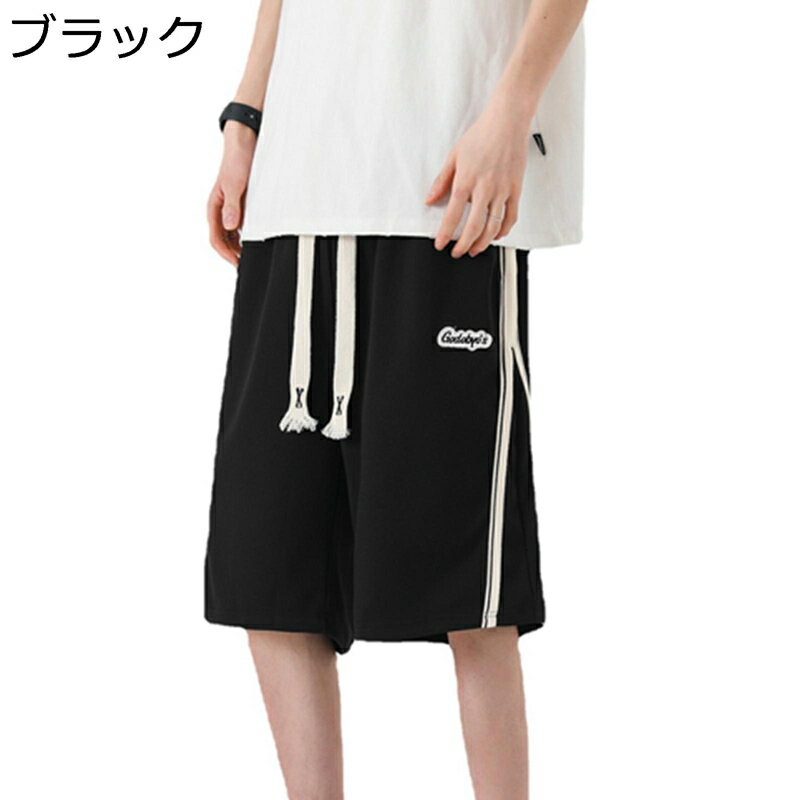 スウェットパンツ メンズ ハーフパンツ ヒップホップ サイドライン ショットパンツ 夏 大きいサイズ ビッグシルエット ストレート カジュアル ダンス ワイド 短パン ジャージボトム スポーツウェア