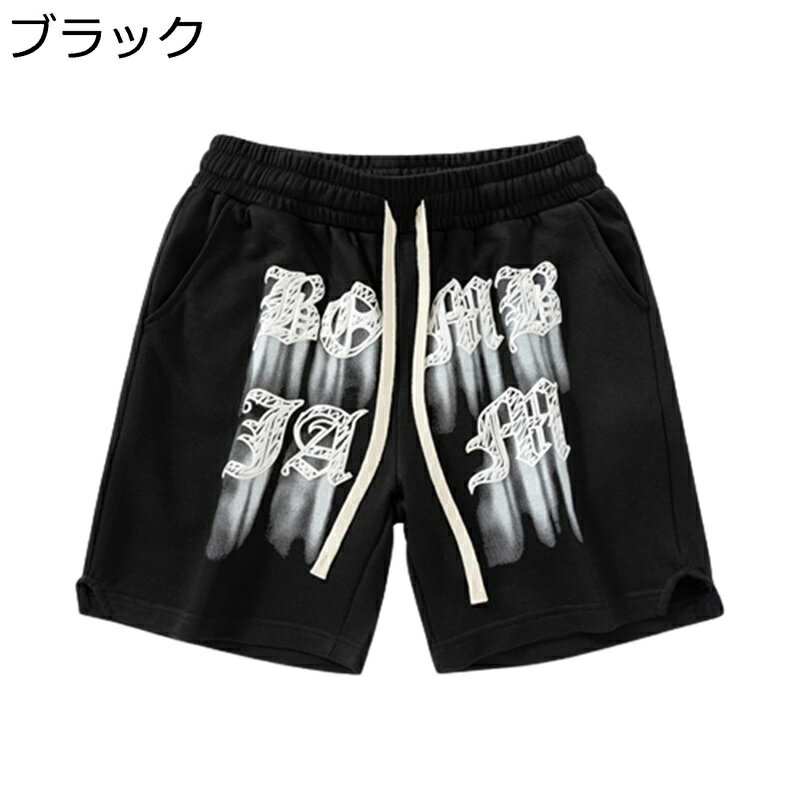 ショットパンツ メンズ スウェット ヒップホップ オーバーサイズ ワイド エンボス 英字柄 ストリートファション 短パン ハーフパンツ ゆったり 通気 カジュアル スポーツウェア ジャージボトム