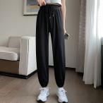 ソリッドカラー テレコ イージー フィットネス パンツ 女性 レディース ボトム ズボン スウェット ジャージ スパッツ レギンス 9分丈