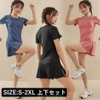 スポーツウェア 上下セット 半袖 レディース トレーニングウェア ランニングウェア ヨガ ウォーキング ジョギング ランニング ジム 速乾 通気 ハーフパンツ