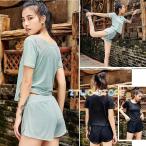スポーツウェア レディース 2点セット 上下セット Tシャツ+ショートパンツ ヨガウェア ランニング 速乾 通気 スポーツ フィットネス おしゃれ 春夏秋
