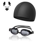 [Phyxiul] スイミングゴーグル 3点セット トスイムキャップ 耳栓 付き スイミングゴーグル 曇り防止 フィットネス 水泳 競泳 水中眼鏡 スイミング ゴーグル ベル