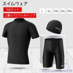 フィットネス水着 上下セット メンズ 水着セット UVカット 競泳 水泳 プール ジム スイミング 競泳水着 練習用 スイムパンツ 半袖 海水浴 男子
