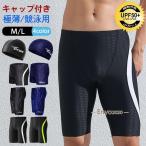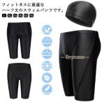 競泳水着 水着メンズ フィットネス水着 プール用品 水着 スイミングパンツ キャップ パンツ 五分丈 2点セット 父の日