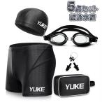 水着 5点セット メンズ トランクス スイムキャップ 耳栓 スイミングゴーグル スイミング 水着ボトムス 水泳水着 カジュアル フィットネス水着 スイムウェア