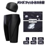 水着 メンズ スイムキャップ付き 競泳水着 2点セット フィットネス水着 ひざ丈 スイミングパンツ 競泳用水着 水着 フィットネス ジム 練習用 水泳