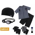 ティゴラ レディス フィットネス水着セット 半袖セット ゆったりサイズ ・2WAYストレッチ スイムキャップ・ワイドタイプスイミングゴーグル 3点セット TIGORA