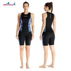 レディース練習用競泳水着 スイムキャップ ゴーグル セット オールインワン ハーフスパッツ ns-3042-4set