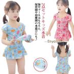 ワンピース水着 水着 スイムキャップ付 セパレート 女の子 子供 キッズ 花柄 2点セット 女の子 アイスクリーム柄 子供 ジュニア フリル 紫外線カ