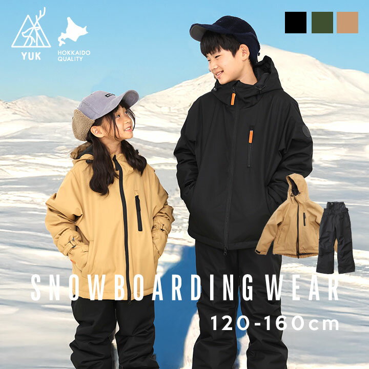 スキーウェア スノーボードウェア キッズ 超撥水yuk 北海道 ジュニア 女の子 男の子 上下セット 120cm 130cm 140cm 150cm 160cm YUK サイズ調節可 子供 耐水圧10000mm 撥水加工 ユック 新作スキーウエア スノボ スノーウェア
