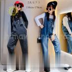 女の子 セットアップ デニムオーバーオール 長ズボン Tシャツ 長袖 2点セット キッズ オーバーオール ロング丈 お出かけ 普段着 上下セット 春着 秋着 110-170