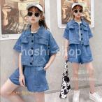 子供服 夏服 ファッション カウボーイスーツ 女の子 セットアップ 上下セット 2点セット デニムジャケット+ジーンズ 半袖 ショーツ レジャー キッズ 110-160
