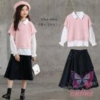韓国子供服 セットアップ 女の子 3点セット フォーマル シャツ+ベスト+スカート シャツブラウス 白 リボン スカート 黒 入学式 卒業式 発表会 七五三 110-160