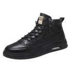 スニーカー 春秋 メンズ スケートボードシューズ ハイカット 革靴 レースアップ 撥水 ウォーキング カジュアルシューズ 防滑 通気性