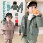 雪遊び ダウンジャケット キッズ スノーボードウェア 子供 上下セット サロペット パンツ 可愛い フード付き スキーウェア ダウンコート 子供服 アウター