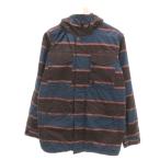 バートン BURTON スノーボードウェア パフジャケット ボーダー柄 フード付き S 青 ブルー グレー /YJ ■GY61 メンズ