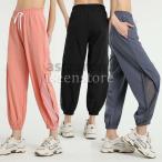 スポーツウェア レディース ボトムス ジョガーパンツ ロング丈 メッシュ ハイウエスト ランニングウェア 薄手 速乾 ゆったり フィットネス ヨガ ジム ジョギング