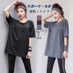 スポーツウェア ヨガウェア レディース Tシャツ 半袖 ランニングウェア ウォーキング トレーニング 部屋着 ゆったり トップス 伸縮 吸汗通気