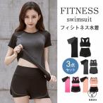 フィットネス水着 競泳水着 レディース 水着 セパレーツタイプ ジム用 3点セット ヨガ トレーニング スポーツ セパレート 半袖 ファッション水着