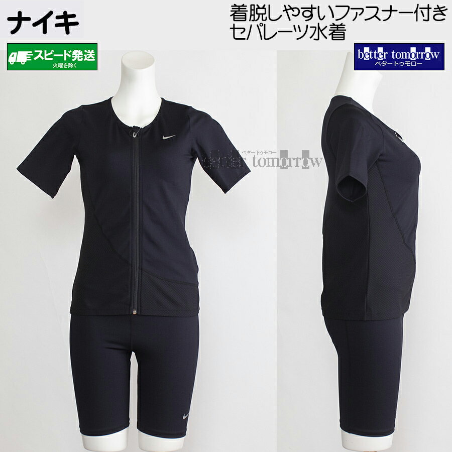 ナイキ NIKIE フィットネス水着 レディース Lサイズ 2993125 ブラック 009 ジップ付き半袖セパレーツ水着 /期間限定!!11月30日まで15%OFF