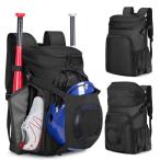 Smasrob 野球バッグ 大人用 ユース用 野球バックパック ソフトボールバッグ ヘルメットホルダー 靴コンパートメント フェンスフック付き ブラッ
