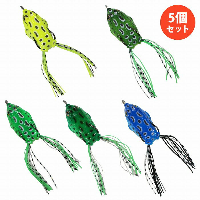 【5個セット】 ソフトルアー ルアーセット フロッグルアー 110mm/11cm 8g カエル型ルアー ブラックバス釣り トップウォーター