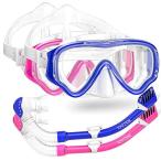 WACOOL シュノーケリング シュノーケル ダイビング スキューバ パッケージセット ギア 子供用 子供用 ジュニア 曇り止め コーティングガラス