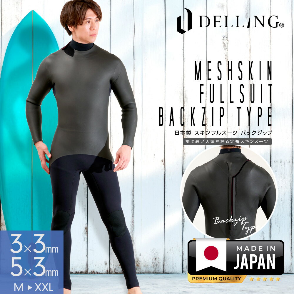 \スーパーSALE!P10倍&10%OFF!/DELLING 日本製 ウェットスーツ フルスーツ(3×3mm / 5×3mm)メンズ バックジップ スキン サーフィン ダイビング シュノーケリング マリンスポーツ SUP 日本人サイズ 日本規格 大きい バックファスナー 国内生産 防寒 保温 デリング