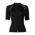 女性ウェットスーツトップ15mmネオプレンフロントジップジャケットは、サーフィンシュノーケリングダイビングのために暖かい水着ドライスーツ半袖を保持しま