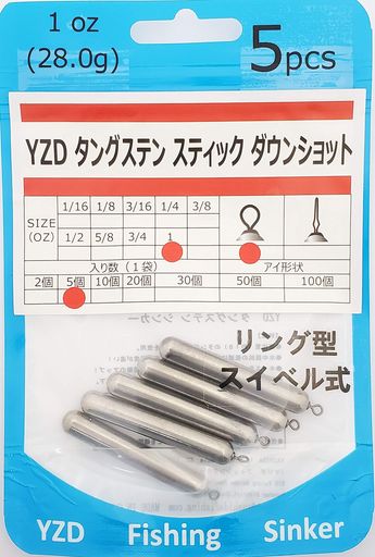 YZDタングステンダウンショットシンカーTG28g1oz【5個】スティック
