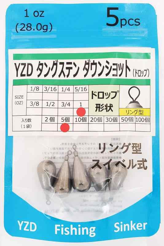 YZD タングステン ダウンショットシンカー TG 28g 1oz 【5個】 ドロップ