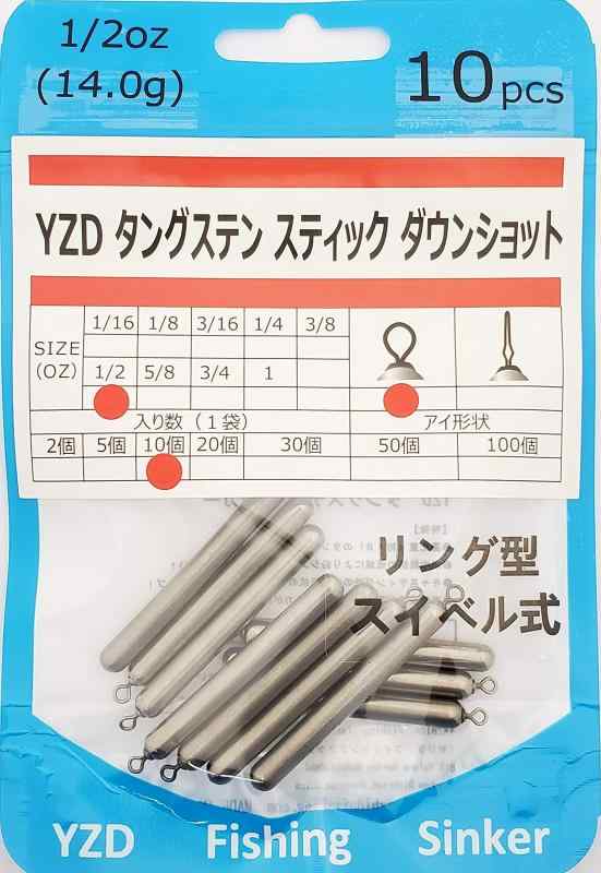 YZDタングステンダウンショットシンカーTg14g1/2oz【10個】スティック