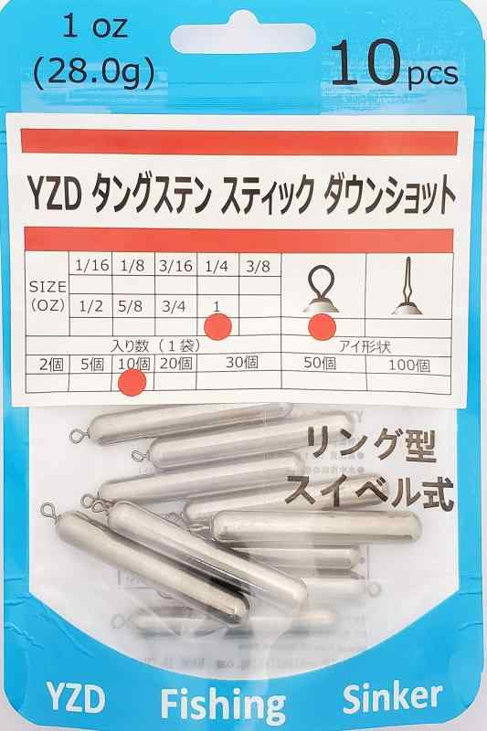 YZD タングステン ダウンショットシンカー TG 28g 1oz 【10個 】スティック