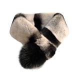 ファーマフラー 66cm 兎毛 兎毛皮 リアルファースヌード パッチワーク グレー 切り替え ぽかぽか ティペット ネックウォーマー 冬用