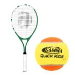 Gamma クイックキッズジュニアテニスラケットセットまたはキットバンドルキッズブライトグリーン/ダークグリーンフェルトトレーニングトランジションボー