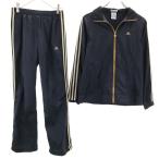 adidas アディダス ロゴ刺繍 トレーニング ジャケット 上下セットアップ M ネイビー スポーツ CLIMASTORM レディース 古着 中古