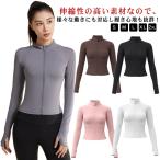 ヨガウェア 長袖 トップス スポーツウェア パーカー ジップアップ ハイネック ジャケット フルジップ 指穴付き トレーニングウェア 上着 ストレッチ