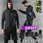 【LINE追加で5%OFF】トレーニングウェア メンズ スポーツウェア ランニングウェア 上下 セット コンプレッションウェア ジムウェア ウォーキング ウェア 春 夏 秋 冬 五点セット パーカー 長袖 半袖トップス メッシュ 黒 おしゃれ ストレッチ素材