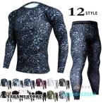 トレーニングウェア コンプレッションウェア メンズ 上下セット スポーツシャツ 迷彩 ロングタイツ 加圧シャツ 登山