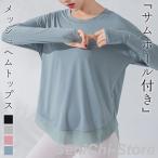 ヨガウェア トップス 長袖 レディース ロング丈 指穴 無地 ゆったり 異素材ミックス 速乾 吸汗 ピラティス ホットヨガ フィットネス ジム 薄手